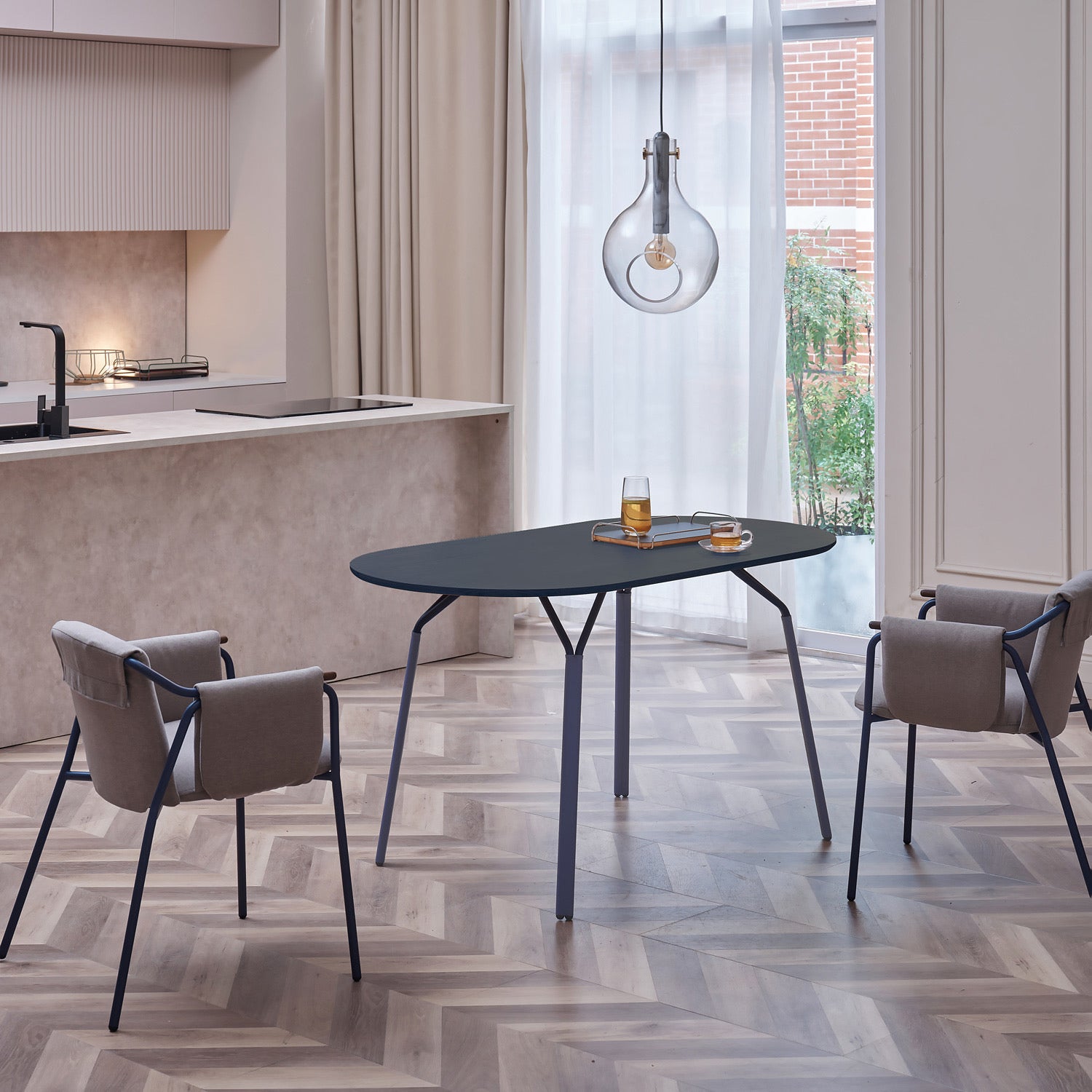 With perfectly rounded corners, the BLANKA Round Dining Table and Long Dining Table are designed in a perfect circle. The thoughtful design includes a two-stage sheer cut to the table sides, offering a smooth touch. Their simplicity subtly exudes a sense of style.